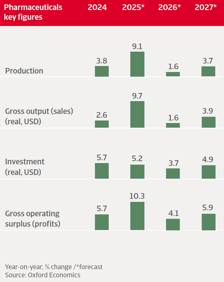 - Global pharmaceutical production increased 9.1% in 2025, mainly due to front-loading activity in anticipation of US tariffs